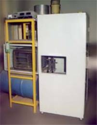 自主设计与建造的 小型氡室 广泛适用于氡测量仪器、氡剂量计、氡测量装置的刻度、检定与性能测试。氡室体积 100L ;控制范围:氡浓度 100~10000 Bq/m 3 ,氡子体 1x10 -6 ~5x10 -3 J/m 3 ,温度 10~35 ℃ ,相对湿度 20~95 % 。