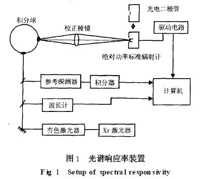 如果不满足以上4 个条件, (6) 式将不适用。为了提高光谱分辨率, 要求双单色仪的光谱带宽仅在几纳米内, 其结果是仅有几毫瓦的激光功率可以利用。这对一个绝对辐射计同光电二极管直接比较是行不通的, 因此必须在其中间加入更灵敏的二级标准作为传递。